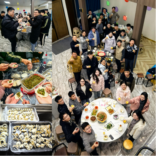 12:00,一场充满年味的“包饺子大会”温情上演。大家共同参与、相互帮助,创意颇多、形态各异的饺子在欢声笑语中逐渐堆满餐盘。亲手包制的饺子搭配美味的菜品,鲜香四溢,每一口都承载着团队的温暖。大家围坐共餐,在畅谈中,同门情谊愈发浓厚。